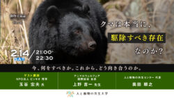 2月14日に、動物幸福論「クマは本当に、駆除すべき存在なのか? ─ 今、何をすべきか。これから、どう向き合うのか ─」を開催しました。 近年、全国的に相次ぐクマの出没や人身被害のニュース。 「怖いから駆除すべき」という切 […]