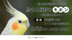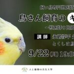 【人と動物の共生大学レポート】2025/9/22開催:鳥さんの時間!「飼い鳥専門獣医師から学ぶ!鳥さん飼育のキホン ~獣医師の目線から~」新着!!