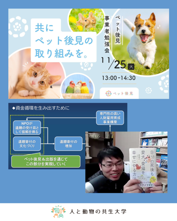 今後は飼い主様向けのペット後見セミナーをリアル開催するなど色々な計画を予定しています。