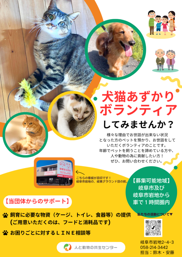 当団体では、犬猫預かりボランティアさんを募集しています!