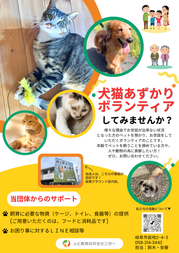 犬猫預かりボランティアさんを募集します